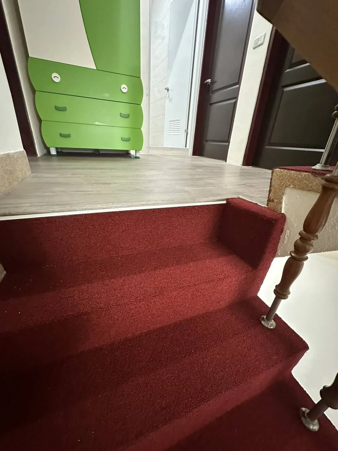 杭州三街 磨石子樓梯 升級地毯樓梯系列 與平面採用卡扣地板形成混搭風格