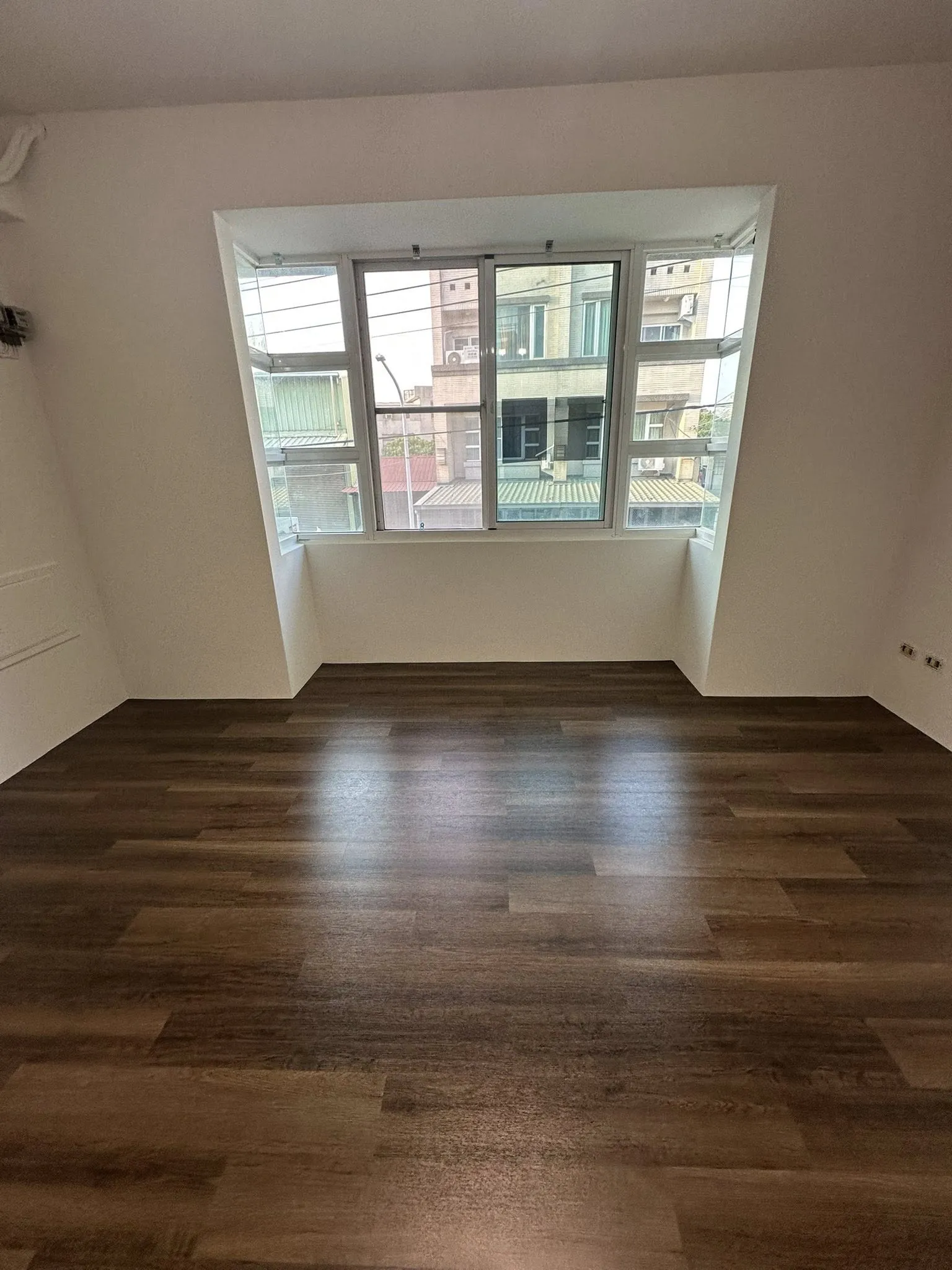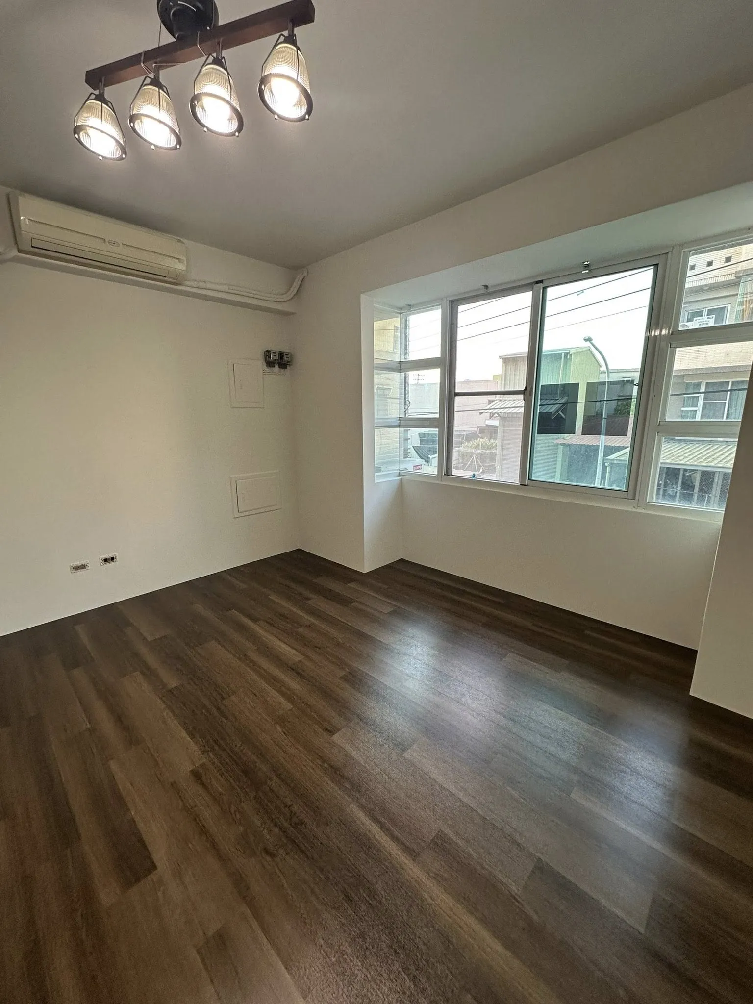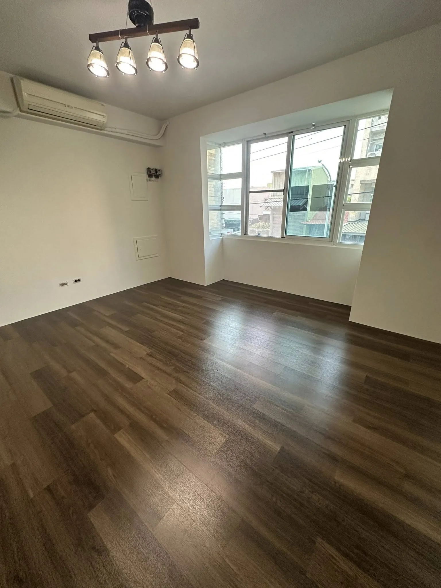 這次的施工以選用油漆豪灰色、PVC仿木地板深色木質調、仿木鋁合金百葉窗,以沈穩、內斂做定調(業主真的選的很好看),深色的風格更有高層次的質感.ᐟ.ᐟ